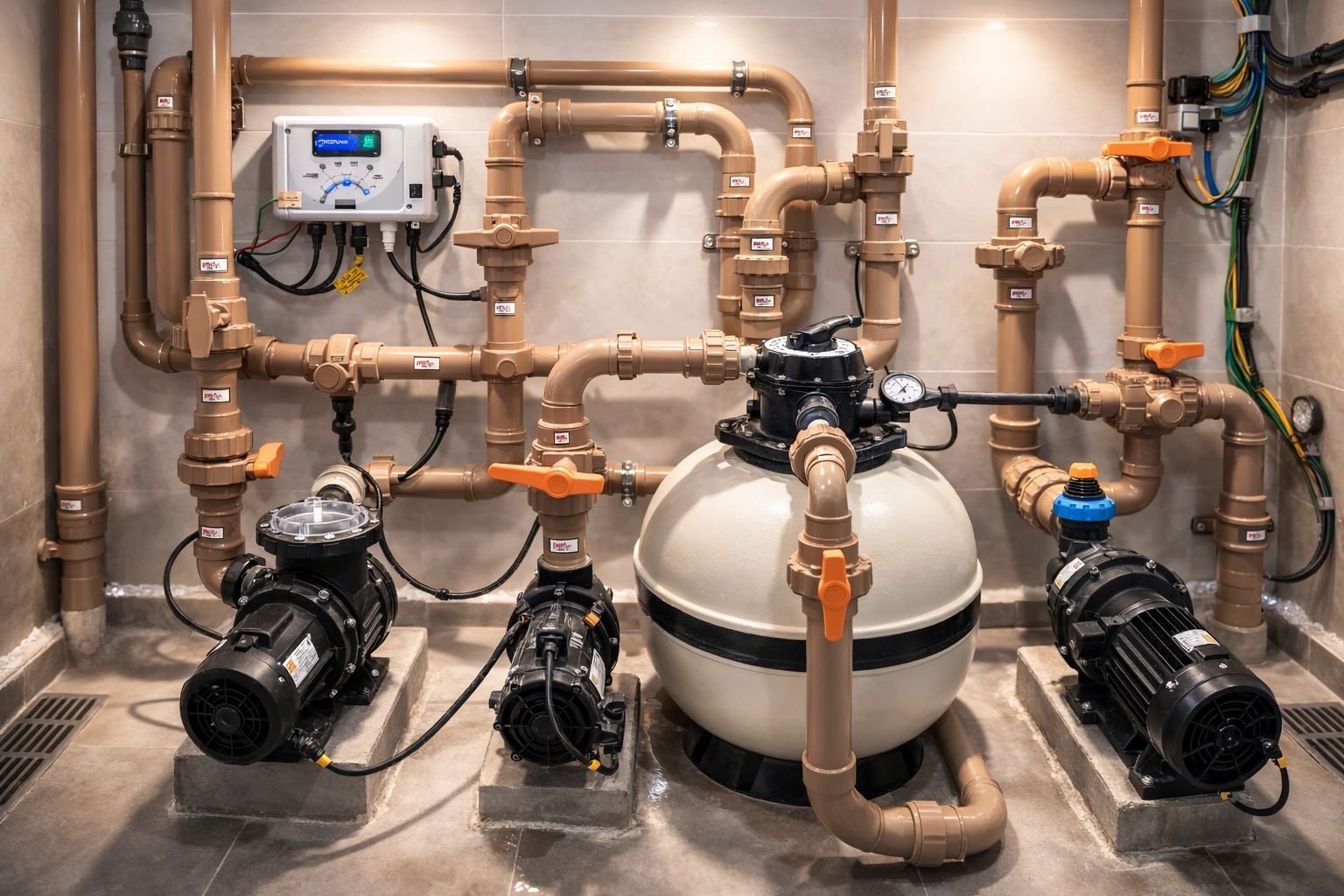 Montagem e organização profissional, Instalação de bombas e filtros, Facilidade para manutenção futura.